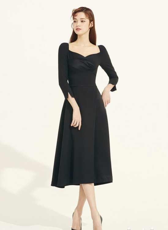 아보아보 AVOUAVOU/HEART NECKLINE SATIN CREPE FLARE DRESS- 1백28만9천원.