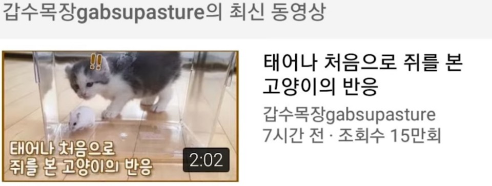 그중 갑수목장도 제가 좋아하는 고양이 채널 중 하나였습니다.