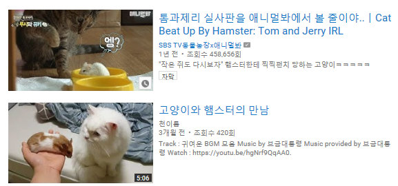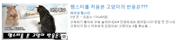 이나오는 영상컨셉중 하나입니다. "햄스터를 처음 본 고양이반응" "햄스터 고양이를 만나다"