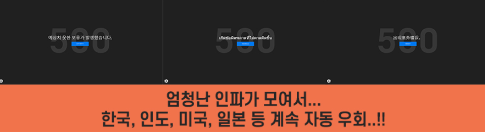 위 사진처럼, 홈 이동, 스토어 이동 누를 때 마다 < 예상치 못한 오류가 발생했습니다. 500 >이 계속 뜨면서 버벅되더라고요. 이게 전세계인들이 몰려서 일어나는 현상이니, 천천히 기다리면서 받아 보세요.