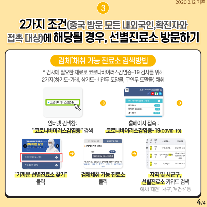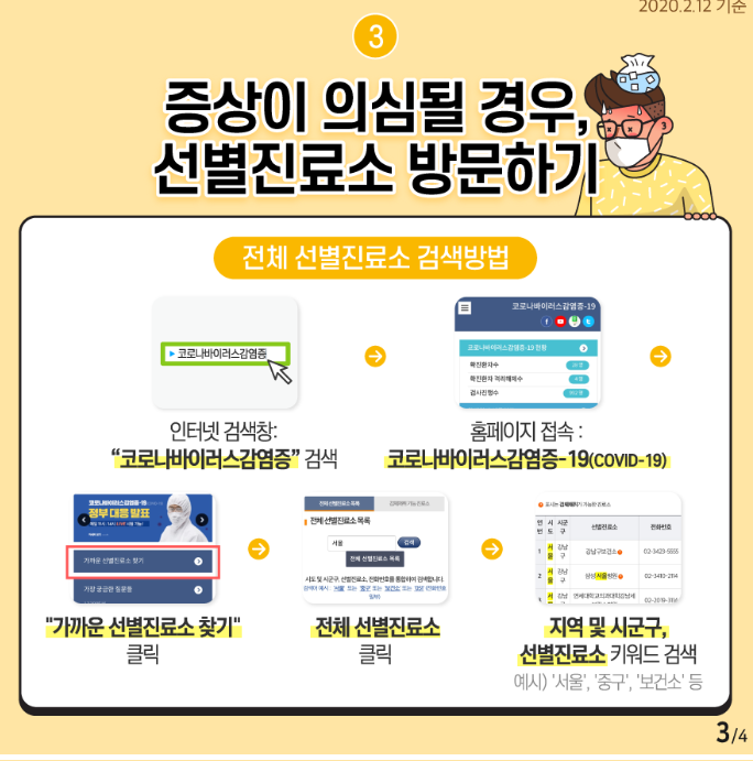 먼저 전국에서 운용되고 있는 선별진료소를 찾아서 방문해야 합니다.