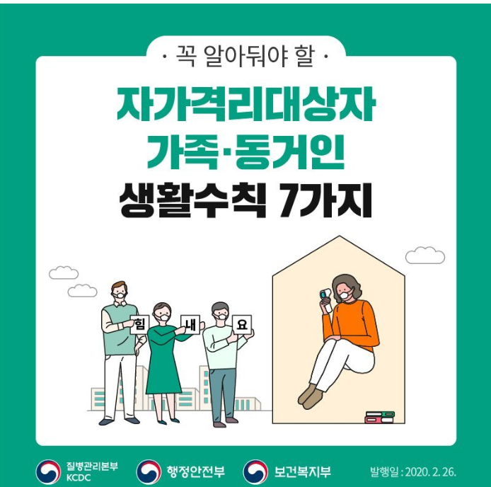 자가격리자가 되면 독립된 공간에서 혼자 생활하고, 방문을 닫은 채로 자주 환기를 시켜야 합니다. 또 혼자만 사용할 수 있는 화장실