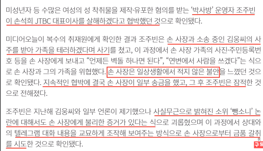 거기에 낚여선 안됩니다. 물론 조주빈이 하는 이야기들 그 배후에 얽힌 이야기들을 파볼 필요도 있겠지만