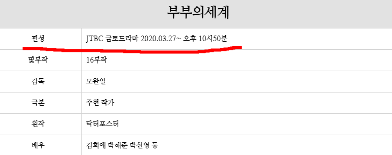 재방송시간은 네이버에 부부의 세계 치시면 편성표 누르시면 매주 확인 가능하십니다~!