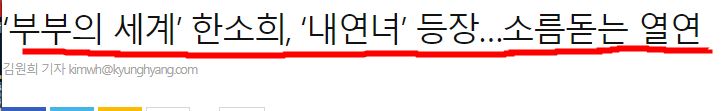 지난 27일 첫 방송된 JTBC 금토드라마 ‘부부의세계’에서는 배우 한소희가 이태오(박해준)의 내연녀인 사실이 밝혀지며 충격을 안겼습니다 ㅎㄷㄷ